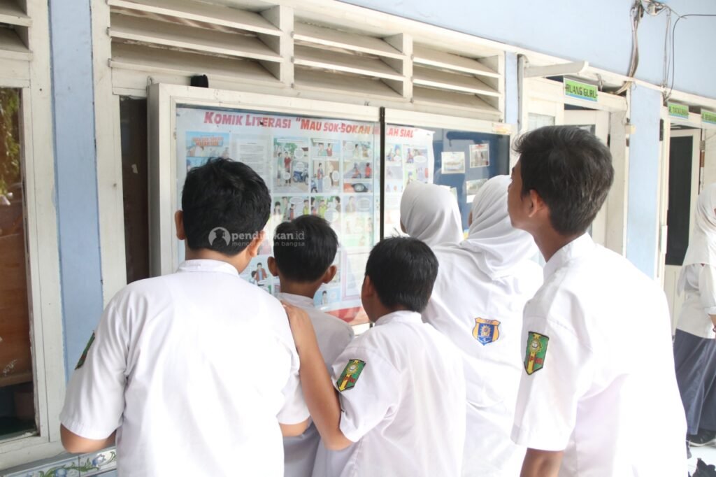 Uniknya, pesan sosialisasi disampaikan dalam bentuk komik yang dicetak seukuran A0 dan ditempel di papan majalah dinding (mading). Ada dua judul komik literasi yang dipamerkan, yaitu komik ‘Belum Saatnya Naik Motor’ dan ‘Mau Sok-Sokan Malah Sial’. Keduanya menceritakan tentang bahaya berkendara di bawah umur, karena mental dan pengetahuan akan rambu-rambu lalu lintas yang belum matang. Sombo Duli, koordinator tim Pendidikan.id menjelaskan, “pelajar remaja emosinya masih belum stabil. Mereka menganggap diri mereka keren dengan kebut-kebutan, melanggar lalu lintas dan memodifikasi sepeda motor. Lagipula mereka belum memiliki SIM yang artinya mereka belum menguasai materi berkendara dan berlalulintas.”